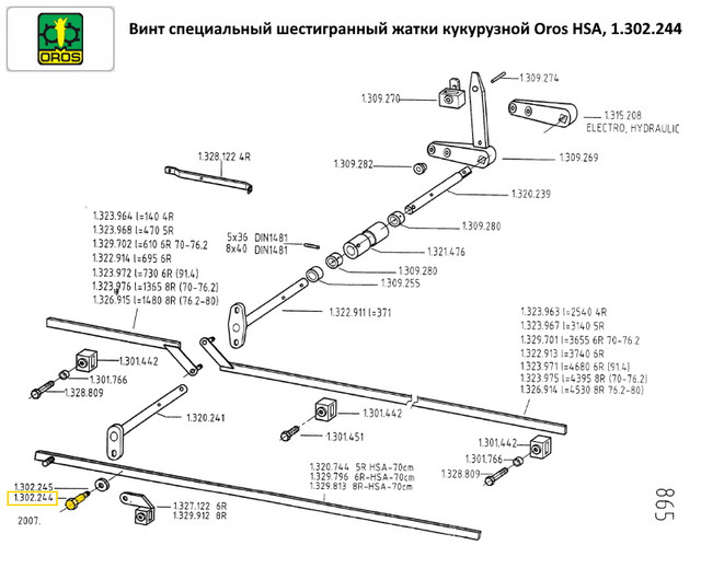 Винт специальный шестигранный жатки кукурузной Oros HSA, 1.302.244