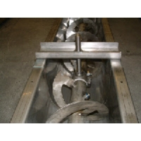 • ленточная спираль для транспортировки вязких материалов,• лопастная спираль используется, когда необходимо перемешивать материал.• Для транспортировки горизонтально с наклоном до 10 градусов обычно используются желобчатые (лотковые) винтовые конвейеры.