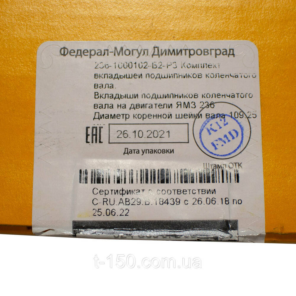 Вкладыши коренные ЯМЗ-236 Р3 (К) Р3, 236-1000102 Р3