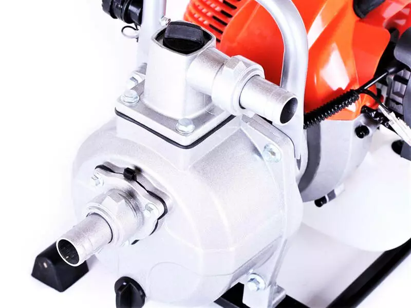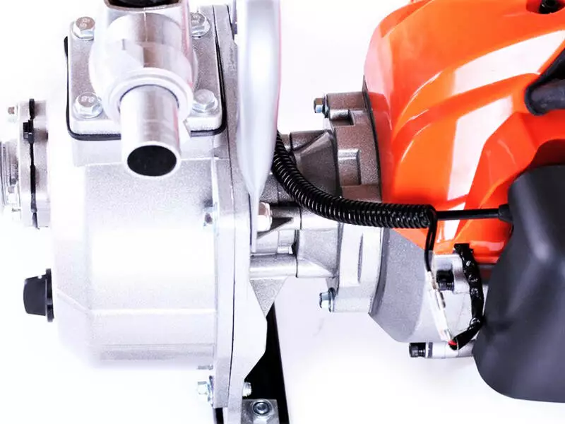 Данная бензиновая помпа отличается высокой производительностью - 50 м3/ч и имеет закрытый тип крыльчатки колеса (литая) состоит из двух дисков между которыми располагаются лопасти, благодаря объему двигателю 42,7 см3 создается хороший напор, с подъемом воды до 8 м. И минимальной утечкой жидкости по выходу. Укомплектована 3-ходовым нагнетательным фланцем, что позволяет подключать несколько рукавов.