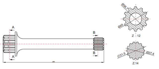 Технические характеристики вала на автоматическую коробку передач (без ретарды) ZF 16 S 251:
