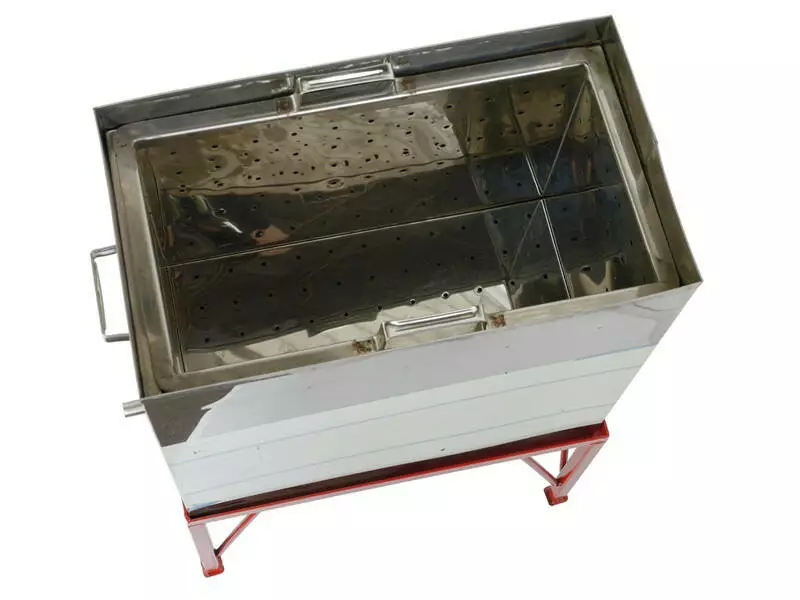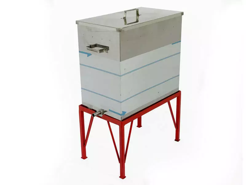 Вставной блок: включает корзину для рамок и съёмный поддон, оснащённый сливной трубочкой. Поддон легко очищается благодаря съёмной конструкции. Корзина снабжена боковыми отверстиями для подачи пара к рамкам и дренажными отверстиями для слива воска.