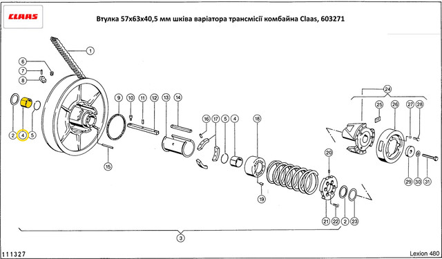 Втулка 57х63х40,5 мм шківа варіатора трансмісії комбайна Claas, 603271