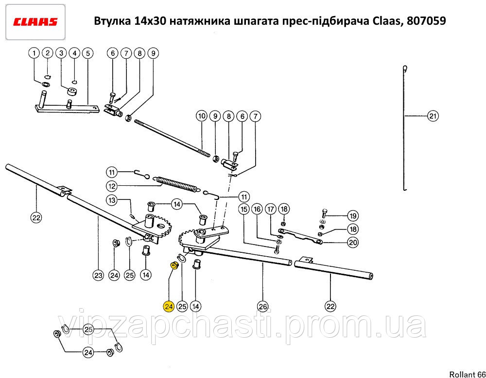 Втулка натяжителя шнура 14х30 пресс-подборщика Claas, 807059