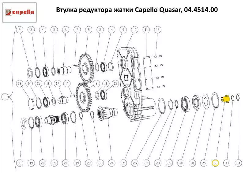 Втулка редуктора жатки Capello Quasar, 04.4514.00