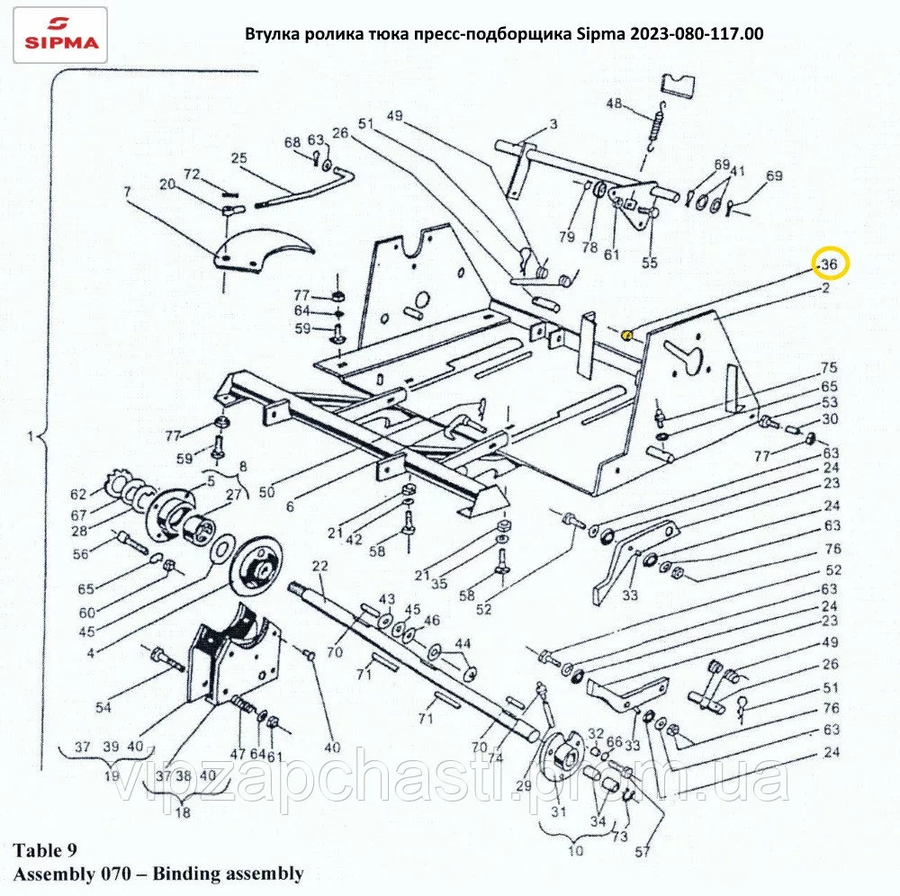 9 . . 2023-080-610.02 кронштейн рычага регулировки тюка в сборе . . . . (запчасти Sipma-224)