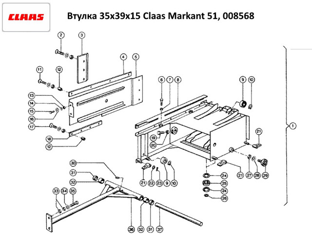 Втулка толкателя поршня тефлоновая 35х39х15 Claas, 008568