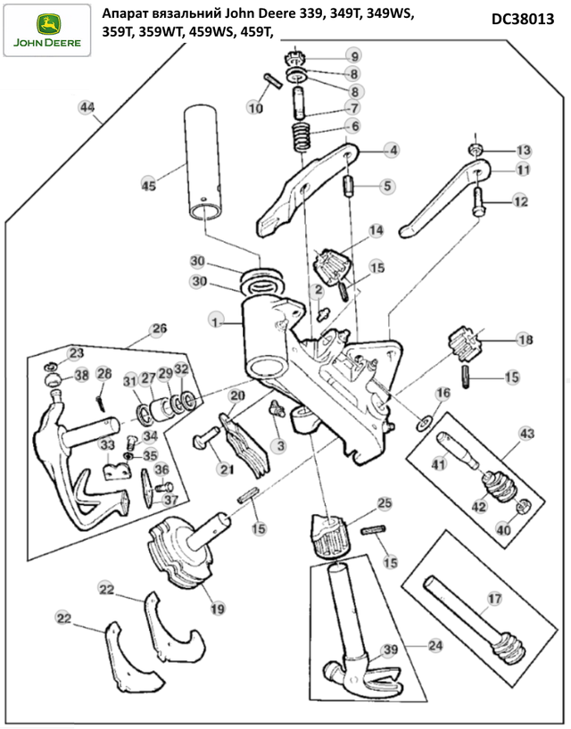 Вязальный аппарат John Deere DC38013 вал 35мм (применение JD339, JD349, JD359, JD459)