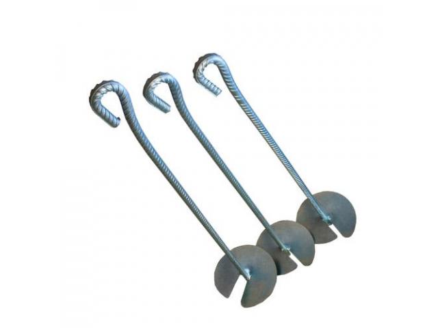 Анкер-это металлическое изделие, предназначенное для оттяжки и фиксации краевой опоры и стабилизации шпалерны на интенсивных садах. Изготавливается из арматуры и листового металла. Все операции над анкер проводятся на "холодную", т.е. без нагрева металла, что сохраняет упругость изделия. Соединение диска и арматуры проводится методом сваривания металла при помощи полуавтоматического аппарата для сварки.