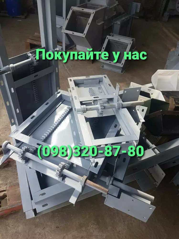 Реечные задвижки прямоугольного сечения 450х450 мм с электроприводом. два ряда зубцов по краям шибера, что зувеличивает надежность при эксплуатации.