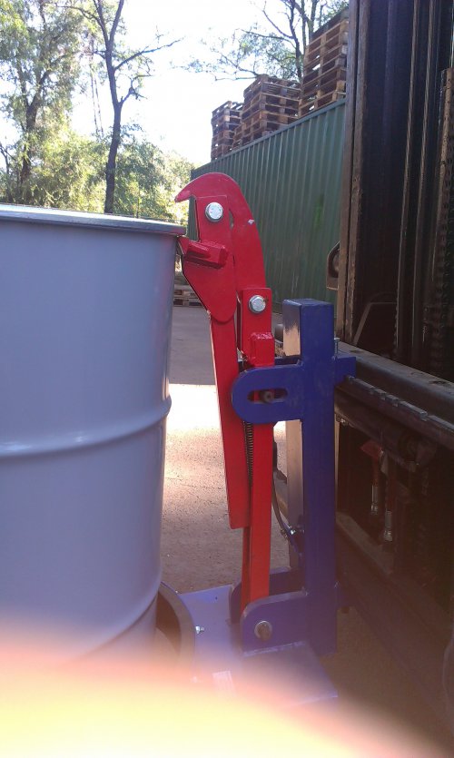 Грузоподъемность захвата для стальной бочки наполненной сухой или жидкой продукцией составляет около 500кг.