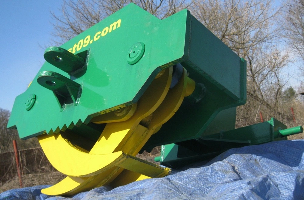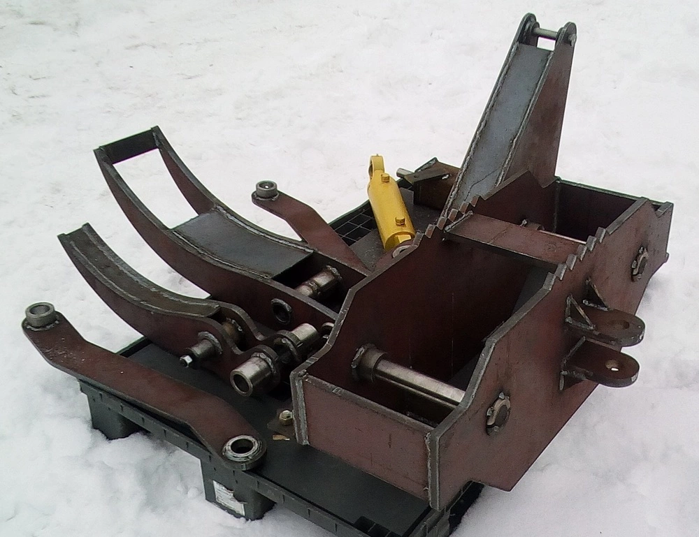 Гідрозахват нашої конструкції оснащений циліндром ГЦ80.40.200.500. У вухах циліндра сферичні шарніри діаметром 40 мм. Всі пальці і втулки зі сталі 45, пальці термооброблені і прошліфовані. Діаметр всіх пальців 40 мм. Всі втулки обладнані маслянками. Захват для колод виконаний з високоякісного металу, який є стійким до ударів і перепадів температур. Товщина металу основної конструкції 16 мм, стінки великого ікла 20 мм.