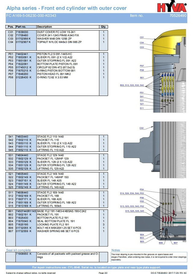 Уплотнительное кольцо 72,62х3,53 мм предназначено для гидроцилиндра FC A169-5-06230-000-K0343, артикул 70526490.