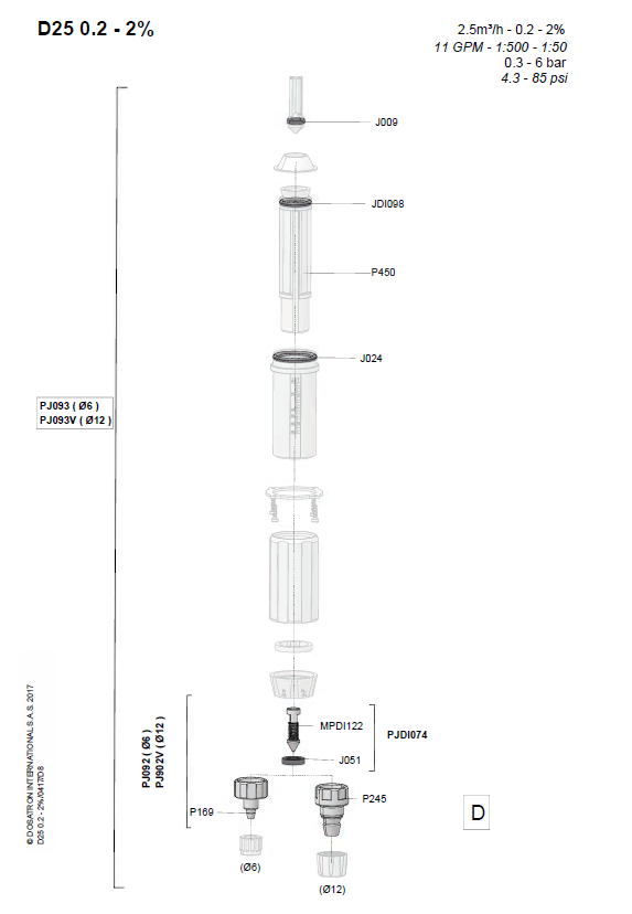 Оригинальные запчасти к дозатору Dosatron d25re2 под заказ. Для заказа нужных запчастей напишите нам или позвоните по телефону. Помогаем с выбором.