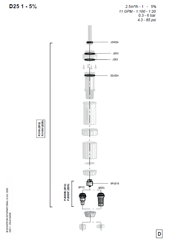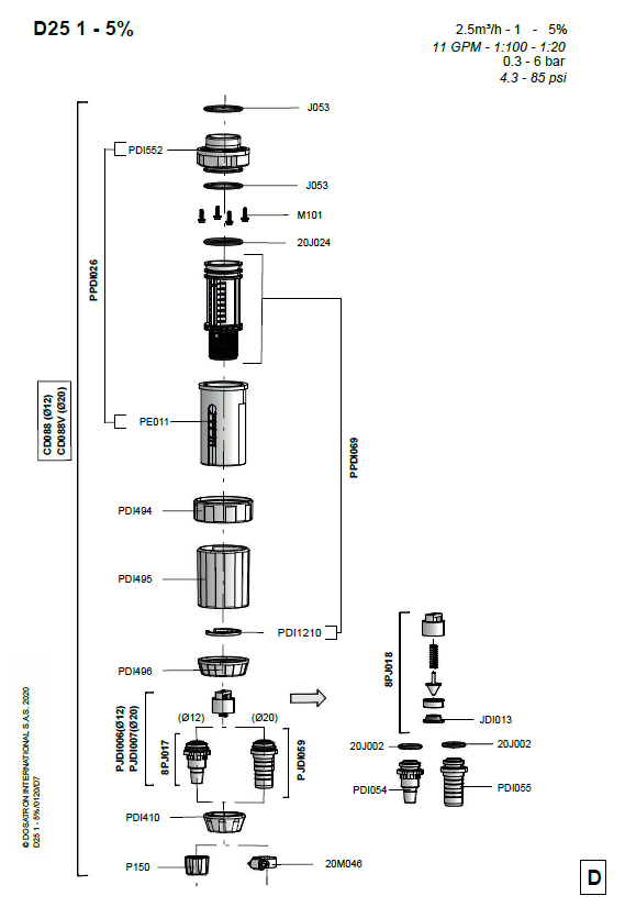 Оригинальные запчасти к дозатору Dosatron d25re5 под заказ. Для заказа нужных запчастей напишите нам или позвоните по телефону. Помогаем с выбором.