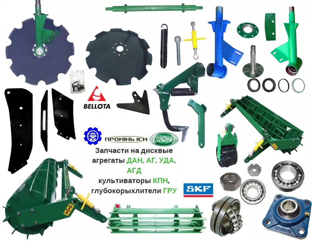 Запчастини на техніку Промінь БМЗ: АГ УДА ДАН КПН АГД Тримач Диск Тяга Ось Підшипник