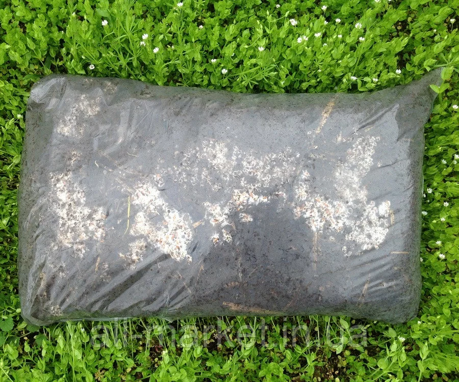 Грибной блок - это пакет с субстратом, засеянным живым зерновым мицелием белого гриба. Размер пакета - приблизительно 60*40*20 см, вес - около 15 кг. В процессе изготовления грибной блок должен пройти фазу инкубации (зарастания) мицелия. Длится этот период около 4-х недель. Все это время блок будет находиться под контролем наших специалистов, что гарантирует жизнеспособность субстрата.