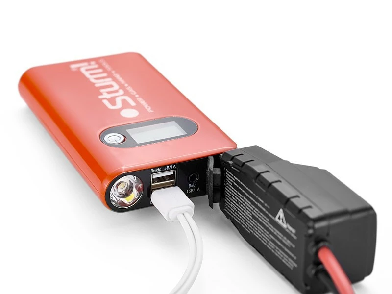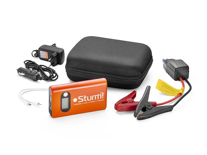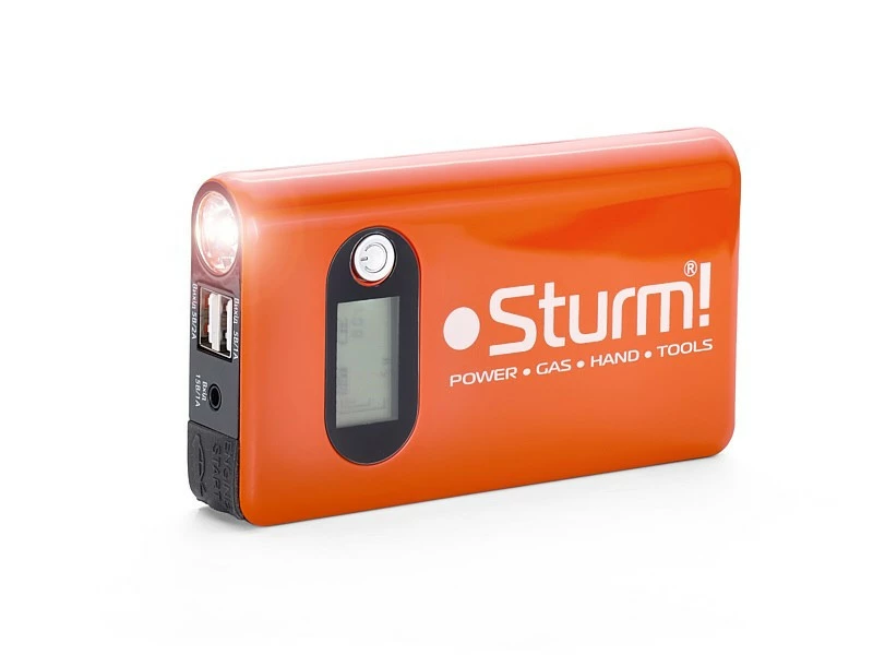 Зарядно-пусковое устройство Sturm BC1214 имеет компактный, высокоэффективный литий-полимерный аккумулятор, способный отдавать большие токи, применяется для автономной зарядки мобильных устройств и пуска бензиновых автомобильных двигателей с рабочим объемом до 3,5 л. Светодиодный индикатор позволяет оценить остаточный заряд аккумулятора. В комплекте поставляется интеллектуальный адаптер. Адаптер имеет защиту от перегрузки и переполюсовки. Устройство оснащено светодиодным фонарём, имеющим три режима работы — освещение, мигающий режим и режим сигнала SOS. Устройство имеет выходы USB для зарядки различных мобильных устройств. Зарядка устройства осуществляется с помощью сетевого адаптера, позволяющего подключать устройство к бортовой сети автомобиля через прикуриватель.