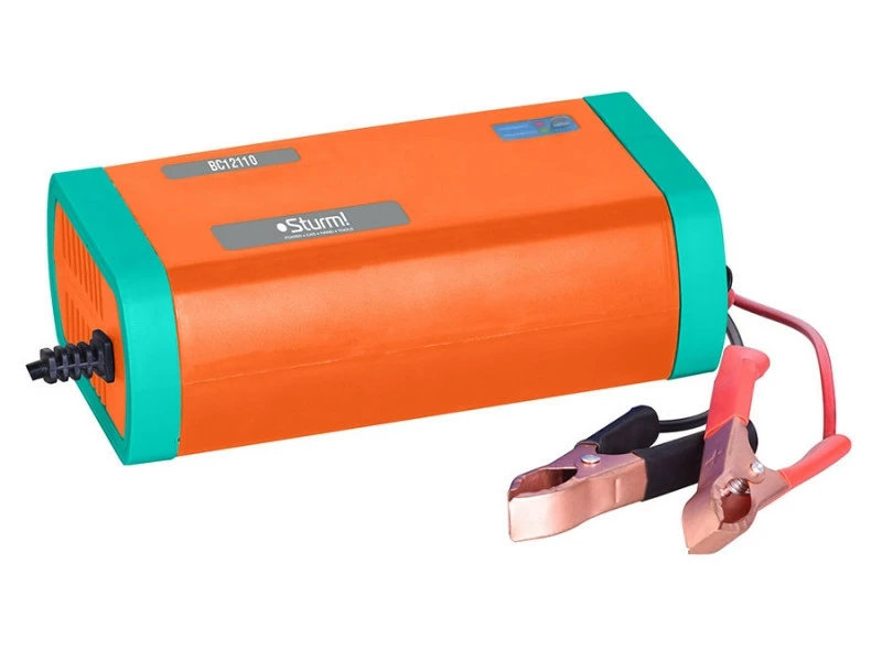 Чтобы зарядить стартерные 12-вольтные батареи, ёмкостью 30-100 Ач, в автоматическом режиме, используется  зарядное устройство инверторного типа Sturm BC12110. Дополнительно, этот прибор применяют для десульфатизации засульфатированных АКБ и для поддержания заряженного состояния АКБ длительное время, а также для защиты их от сульфатации. Даже если АКБ разряжено до 0, то прибор может его реанимировать с помощью коротких импульсов и силы тока до 10 А.