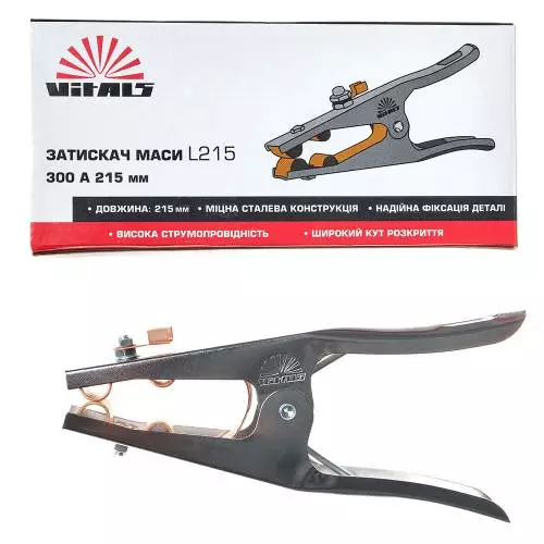 Затискач маси Vitals L215 300A — це необхідний аксесуар для проведення зварювальних робіт. Основна функція затискача — надійне з’єднання джерела живлення та деталі, що зварюється завдяки міцній конструкції в поєднанні з потужною пружиною.