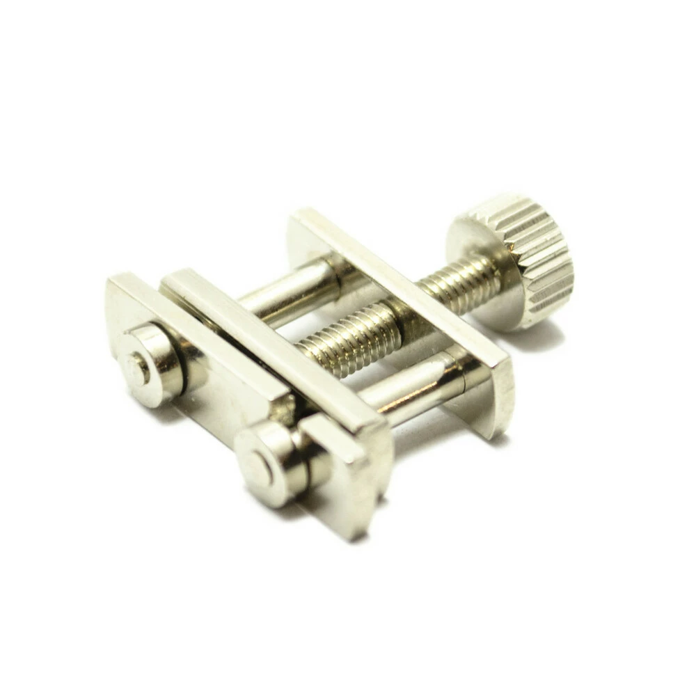 Принцип работы очень прост – шланг зажимается между нижней и средней (подвижной) планками. Регулировка подачи жидкости происходит с помощью винта, который опускает среднюю планку до нужного сжатия. Удобство зажима в том, что его можно использовать уже на собранном дистилляторе или ректификационной колоне..