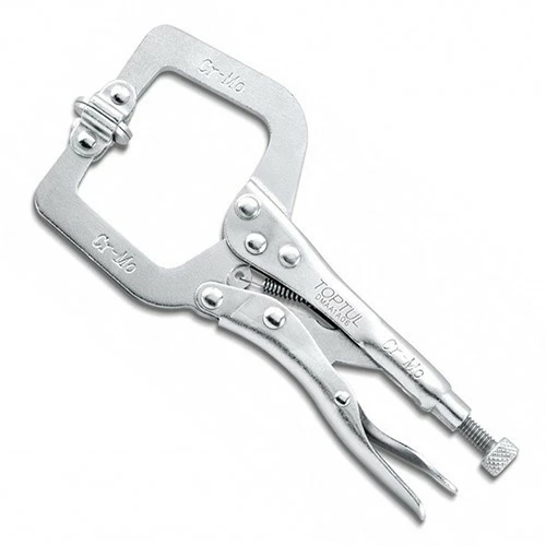 Зажим С-образный с фиксатором TOPTUL 460мм (C - тип) DMAA1A18. На сегодняшнее время в мире разработано новаторами и произведено огромнейшее количество всевозможного инструментария для сварных и рихтовочных работ. У каждого мастера по ремонту в своём личном арсенале должен находится инструмент для фиксации различных деталей при разнообразных видах обработки. Для такого вида работы с деталями необходимо приобрести такой инструмент, как клещи с фиксатором. Фиксатор спускового механизма клещей предотвращает случайное открытие. Инструменты данного назначения предоставляют огромное разнообразие моделей как профессионального, так и пользовательского назначения. Выбирая клещи следует обратить свое внимание на качество инструмента и материал из которого он был изготовлен. Ведь инструмент изготовленный из некачественного материала быстро приходит в непригодность. В изготовлении инструментария производства TOPTUL (Тайвань) используются многокомпонентные марки стали с применением стойкого к окислению соединений хром- ванадия. Ручка инструмента изготовлена из хроммолибденового сплава с никелированной отделкой и термообработкой. | На нашем сайте Гранд Инструмент вы можете выбрать клещи, цена которого соответствует качеству. Инструменты TOPTUL отличаются, максимальной надёжностью и длительным сроком службы, а на некоторые группы инструмента распространяется даже пожизненная гарантия. Приобрести инструменты для ваших потребностей не составит особого труда, купить клещи вы можете по безналу, либо получить перевозчиком наложенным платежом от компании импортера марки TOPTUL «Гранд Инструмент» возможно и онлайн у консультанта. Клещи с фиксатором- это верный выбор в пользу надёжности, долговечности, качества и эргономичной функциональности.
