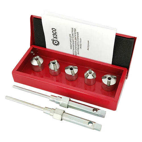 Данный набор фрез (шарошек) предназначен для восстановления геометрии седел клапанов двигателей внутреннего сгорания автомобилей. Фрезы имеют в своей конструкции режущие ножи с фиксированным положением, т.е. нерегулируемые положения относительно корпуса фрезы.