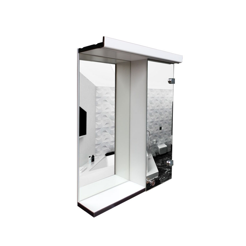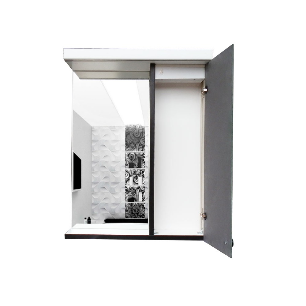Высота зеркала составляет 70 см. Глубина - 12 см. Корпус изготовлен из пластика цвета белый сатин. Торцы окантованы черным пластиковым кантом. Зеркало с двумя полочками. Практичным хозяевам нужна практичная, надежная, долговечная мебель. В этом  зеркале в ванную комнату сочетается все лучшее, что только можно представить: практичный пластиковый корпус, устойчивость к влаге, зеркальный фасад. То есть зеркало и есть дверь. Есть 2 полочки, которые делят пространство на 3 части. Нижнее пространство составляет 25 см. Выше 2 пространства по 18 см. На полочках можно разместить много косметических средств, встанет даже высокая бутылочка с шампунем.Кроме основных параметров мы предусмотрели дополнительные функции - возможность установки точечной или ленточной подсветки и подогрев. Ленточный LED светильник чуть меньше зеркального полотна. Подсветка расположенная под козырьком зеркала обеспечит дополнительное освещение для нанесения более точного макияжа или выполнения процедуры бритья. Подогрев зеркал является новинкой и используется для предотвращения запотевания зеркал.