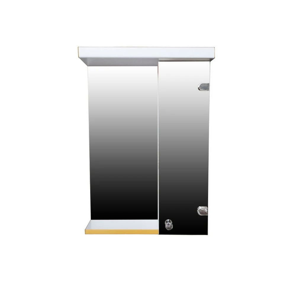 В этом  зеркале в ванную комнату сочетается все лучшее, что только можно представить: практичный пластиковый корпус, устойчивость к влаге, зеркальный фасад. То есть зеркало и есть дверь. Есть 2 полочки. Нижнее пространство составляет 25 см. Выше 2 пространства по 18 см. На полочках можно разместить много косметических средств, встанет даже высокая бутылочка с шампунем.Кроме основных параметров мы предусмотрели дополнительные функции - возможность установки точечной или ленточной подсветки и подогрев. Ленточный LED светильник чуть меньше зеркального полотна. Подсветка расположенная под козырьком зеркала обеспечит дополнительное освещение для нанесения более точного макияжа или выполнения процедуры бритья. Подогрев зеркал является новинкой и используется для предотвращения запотевания зеркал.