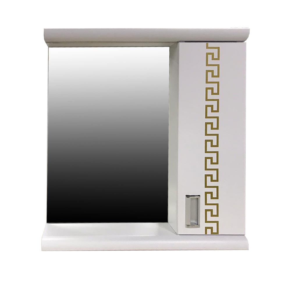 В этом  зеркале Themix-Греция в ванную комнату сочетается все лучшее, что только можно представить: практичный пластиковый корпус, устойчивость к влаге, элегантный фрезерованный рисунок на греческую тематику и наличие шкафчика. Количество полочек и размер можно сделать по вашему желанию. Кроме этого, есть возможность установки точечной или ленточной подсветки и подогрев.