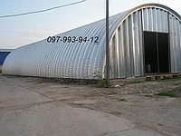Ангары бескаркасные, арочные, быстровозводимые - 1000кв.м. за 10 дней! В любой точке Украины - мобильный комплекс. Металл - оцинкованная сталь 0,7-1,25мм. С плотностью цинка - 130-280гр./м.кв. Диаметр конструкции - 12-25м. Прочностью - 480кг/м.кв. Область применения - всевозможные объекты промышленного и коммерческого назначения: зерносклады; гаражи; ангары; склады; спорткомплексы; мастерские; корты; крытые манежи, крытые рынки, ..... Стоимостью от 390грн/м.кв.