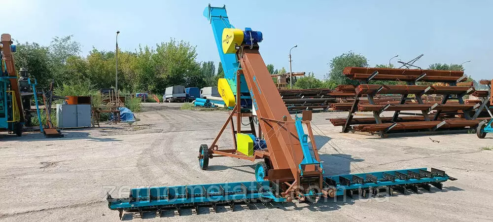 Перекидає зерно на відстань до 20м і забезпечує висоту складання до 8м.
