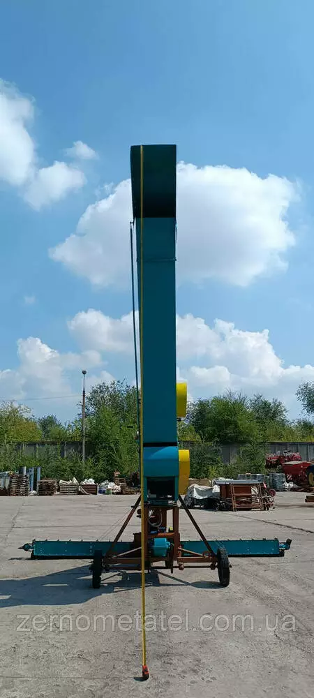 Перекидає зерно на відстань до 20м і забезпечує висоту складання до 8м.
