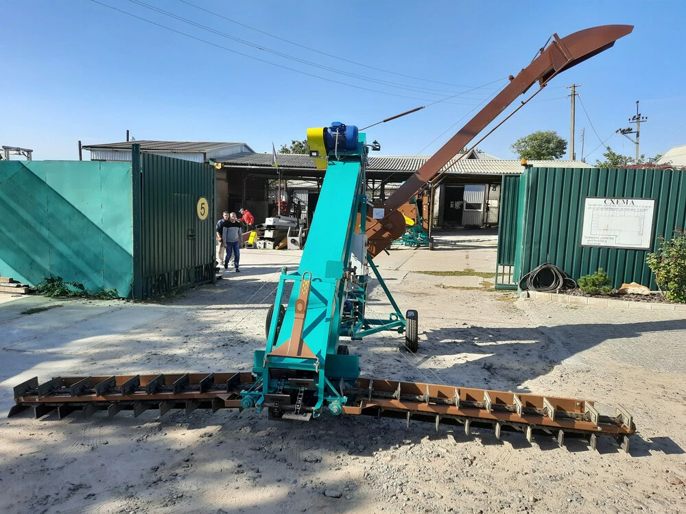 У конструкції передбачена рама, піднята на 50 см, завдяки чому відбувається безперервний процес завантаження зерна в транспорт, рівний розподіл матеріалів на складах, формування буртів після двох проходів тримера.