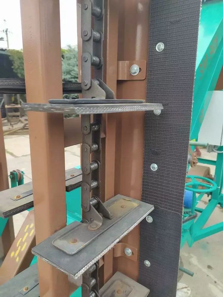 Завдяки транспортній стрічці з шевроном двох видів: прямий і ялинка досягнуто збільшеної продуктивності та дальності метання зерна.