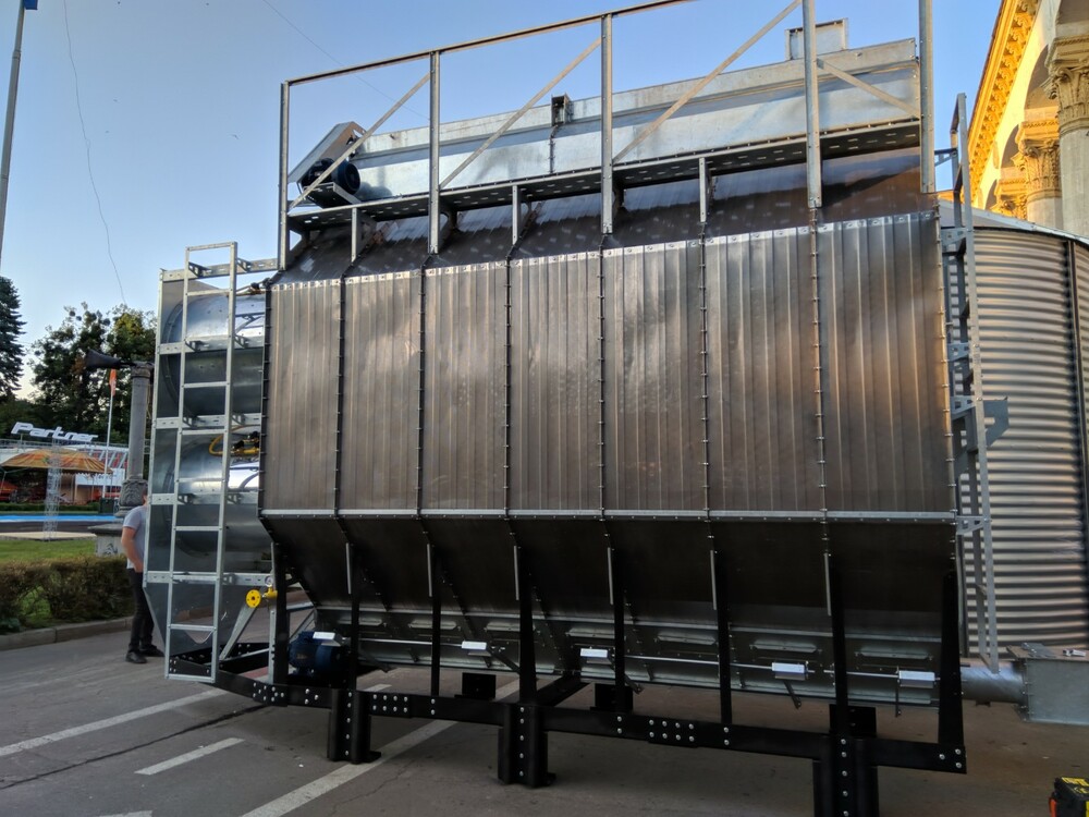 Внутренние и внешние стенки колонн изготовлены в виде решет с соответствующей перфорацией, что позволяет эффективно продуть слой зерна (36см), поддерживая температуру, заданную оператором.