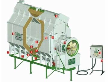 Зерносушилки SUKUP имеют перекрестную подачу зерна. Скорость движения зерна регулируют с помощью вальцевой системы выгрузки зерна. Все зерносушилки выпускаемые компанией SUKUP могут работать как поточном, так и порционном режимах. Температура сушки зерна может варьироваться от 38 С до 120 С, что позволяет использовать зерносушилки для сушки фуражного, продовольственного и семенного зерна всех основных зерновых культур.