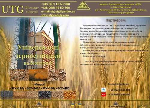 Биоэнергетическая компания "ЮТГ" разрабатывает, производит, устанавливает, модернизирует, запускает утилизационные комплексы, биотопливные котлы, топки, теплогенераторы и промышленное технологическое оборудование связано с производством альтернативных источников энергии. Предлагаем Вашему вниманию универсальные зерносушилки на биотопливе