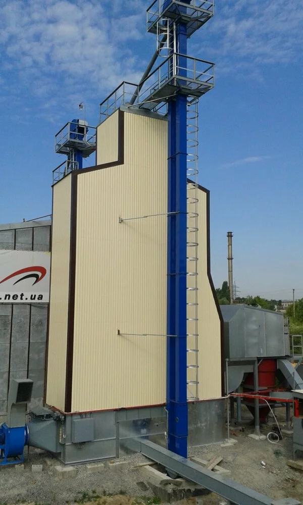 Глухие стенки сушильной колонны закрыты обшивкой из профилированного оцинкованного листа и теплоизолированны.