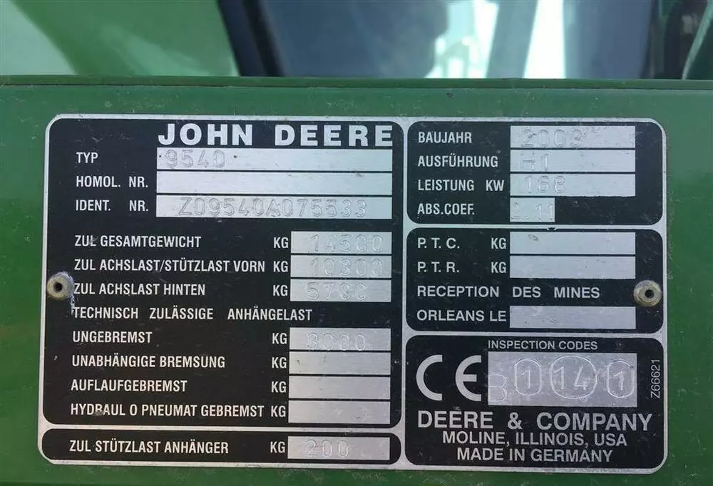 Зерноуборочный комбайн John Deere 9540 WTS1, 2003 г.в.