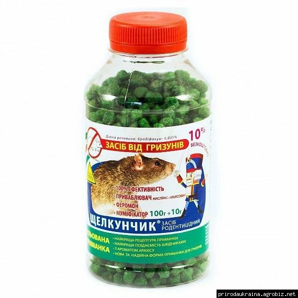 100% средство от грызунов, крыс, и мышей Щелкунчик гранулы 250 г. Используется в быту, зернохранилищах, амбарах, на промышленных объектах, и т.д.