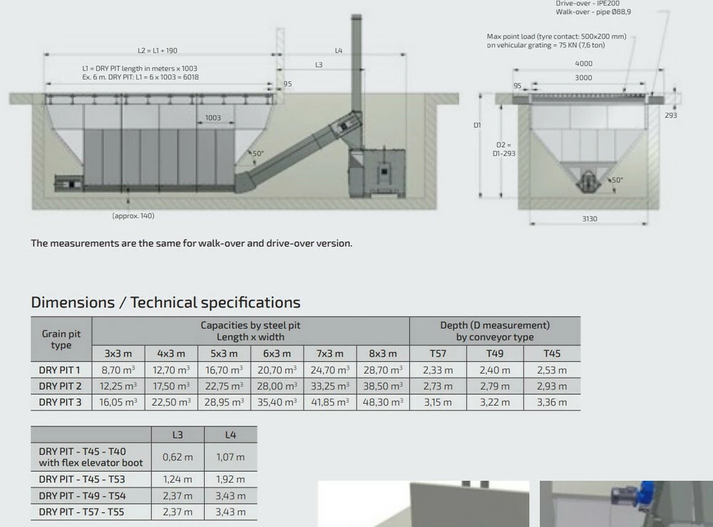 Сталь должна висеть в бетонной яме с вертикальными сторонами, и она производится в рамках оцинкованной стали, которые должны быть скреплены вместе. Зерновая яма имеет стандартную ширину 3 м и доступна на 3 глубине. Его можно удлинить по длине от 3 метров.