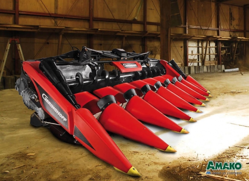 • представлены 6-ти, 8-ми, 12-ти рядные жесткие и складывающиеся жатки для уборки кукурузы;