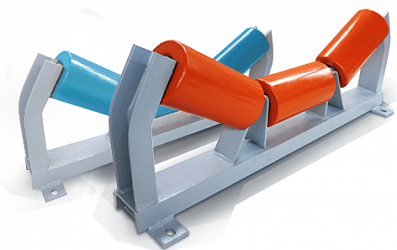 Наиболее распространенный тип роликоопор для транспортировки сыпучих материалов.
