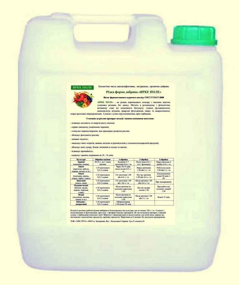 Жидкое удобрение из куриного помета "ЯРКОЕ ПОЛЕ" - 20 л.