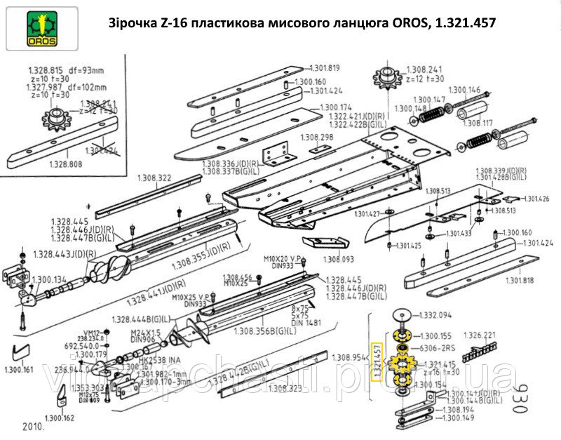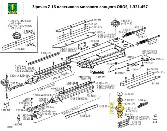 Зірочка Z-16 пластикова мисового ланцюга OROS, 1.321.457