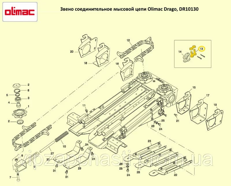 Звено соединительное мысовой цепи на кукурузную жатку Olimac Drago DR10130