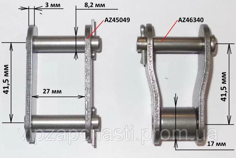 Звено цепи соединительное AZ45049 John Deere шаг 41,5мм пальчик диаметр 8мм аналог (CA550, 80040241, AH137630)