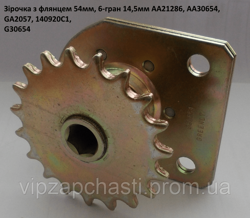 Звездочка на сеялку John Deere, Kinze, 54мм, 6-гран 14,5мм AA21286аналоги AA30654, GA2057, 140920C1, G30654, SPR 300-ZP Lutco