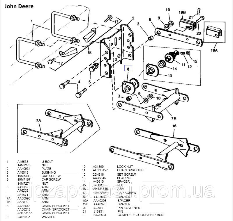 AH133153 звездочка Z-19 в сборе с фланцем Jonh Deere